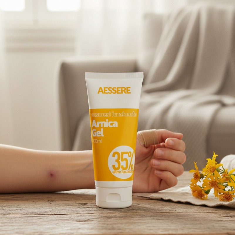 L’”Arnica Montana” (erba medicinale della famiglia delle Asteraceae) è una pianta che in Europa è utilizzata fin dall’antichità per ricavare unguenti medicali. A livello cosmetico trova ampio utilizzo nei massaggi per dare sollievo dal dolore muscolare, delle contusioni e dai gonfiori.