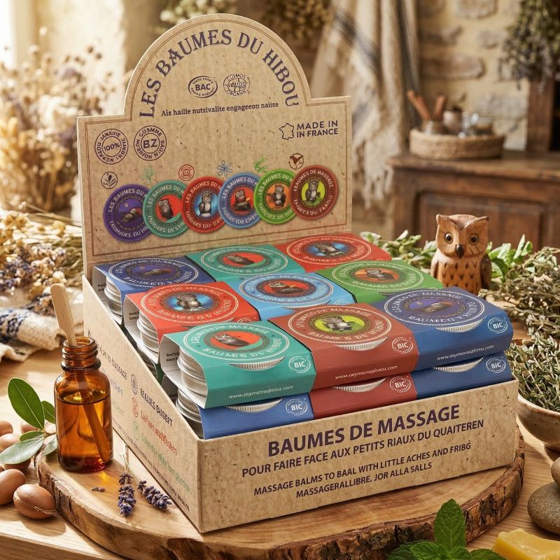 Olio d’oliva, cera d’api*, Arnica*, olio di girasole*, elicriso, 100% fragranza naturale, oli essenziali di rosmarino*, di canfora, vitamina E naturale, oli essenziali di eucalipto radiata*, di balsamo d’abete*, di bacche di ginepro*, di mandarino verde*, molecole naturalmente presenti in oli essenziali.
