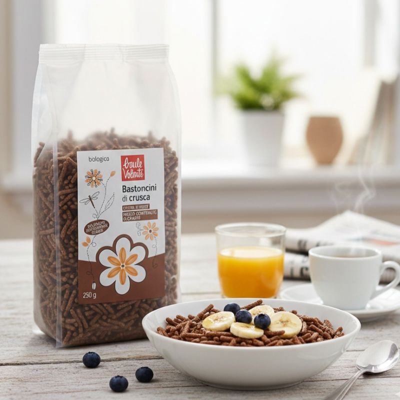9 Aprile 2024Ingredienti: Crusca di frumento* 65%, farina integrale di frumento*, sciroppo di mais* 10%, sale.*Biologico