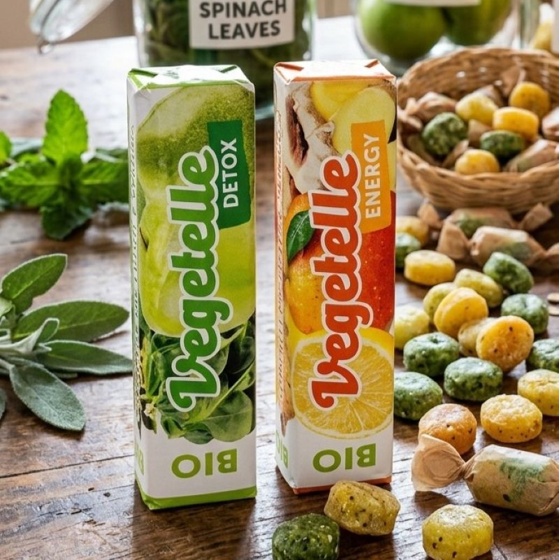 11 Aprile 2026DETOX dona un effetto disintossicante al tuo organismo con le Vegetelle Detox, squisite caramelle con frutta e verdura (menta, mela, pera, spinaci, sambuco).
