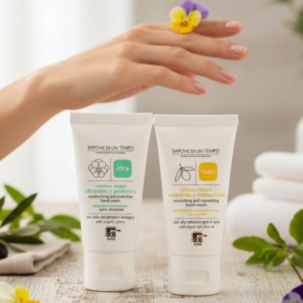 Arricchita con olio extravergine d’oliva, olio di argan, proteine del grano e preziosi oli essenziali di rosa damascena e legno di rosa. Tutti biologici e ricchi di principi attivi che rendono questa crema nutriente e rigenerante ed un ottimo alleato per proteggere le mani dalle aggressioni esterne quali freddo, vento, acqua e detersivi.