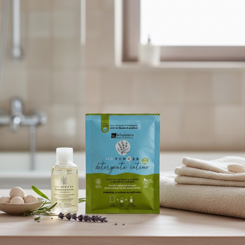 Con la sua formula in polvere, basta versare il contenuto della busta in un flacone, aggiungere acqua e si ottiene così un detergente intimo pronto all’uso. In questo modo puoi riutilizzare lo stesso contenitore all’infinito, riducendo rifiuti e imballaggi superflui. Un piccolo gesto quotidiano che fa bene all’ambiente e rende la routine di tutta la famiglia più sostenibile.