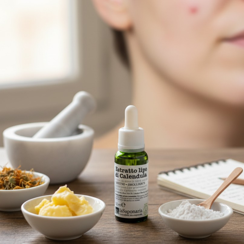 L’Estratto Liposolubile di Calendula, o Oleolito di Calendula, è un macerato oleoso tradizionale ottenuto dall’infusione dei preziosi fiori di Calendula Officinalis in Olio di Girasole Biologico. Questo estratto è la base ideale per trattare e lenire pelli molto sensibili, arrossate o irritate, incluse quelle delicate di neonati e bambini. È particolarmente indicato per chi soffre di pelle secca, screpolata o con lievi irritazioni.