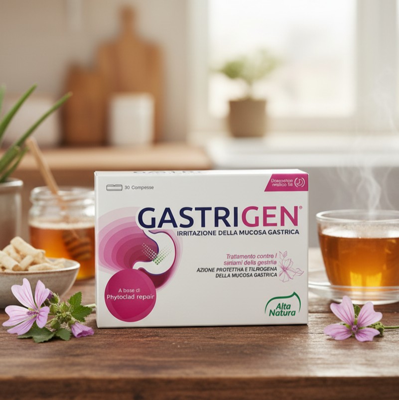 Gastrigen è un Dispositivo Medico di origine naturale formulato per il trattamento sintomatico delle irritazioni della mucosa gastrointestinale. Agisce creando una barriera protettiva meccanica (azione filmogena) per proteggere stomaco ed esofago dall’azione aggressiva dell’acido e accelerare i naturali processi di riepitelizzazione.