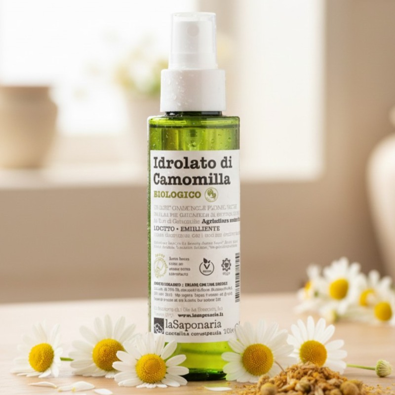 L’idrolato di camomilla rigenera, lenisce, decongestiona e purifica l’epidermide. Questa acqua floreale è perfetta da utilizzare anche nei casi di infiammazione oculare, eczemi, psoriasi.