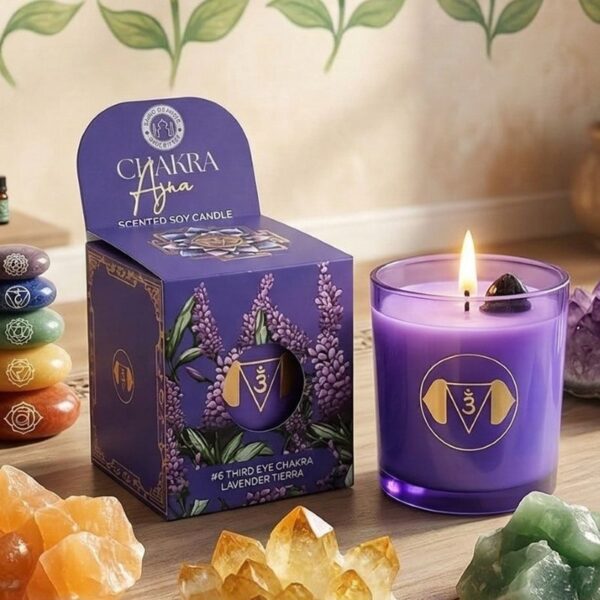 • Candela profumata in cera di soia 6 chakra Ajna lavanda tierra