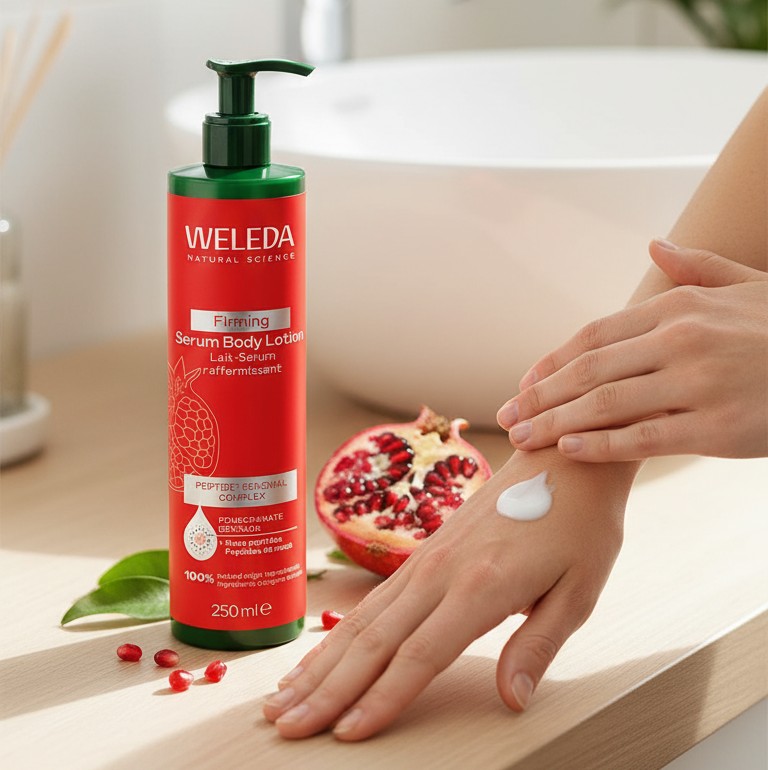 Il Latte Corpo Siero Rassodante Melograno rassoda e rigenera la pelle e stimola il rinnovamento cellulare.