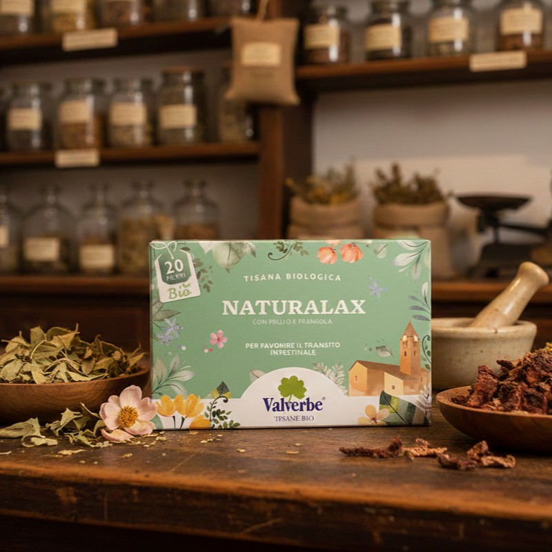Integratore erboristico a base di piante, in particolare con Psillio, Frangola e Malva combinate per favorire la regolarità del transito intestinale e Menta piperita, che favorisce la regolare motilità intestinale e l’eliminazione dei gas. La tisana Naturalax Valverbe non contiene Senna. Dunque è importante seguire la corretta preparazione per beneficiare delle sue proprietà.