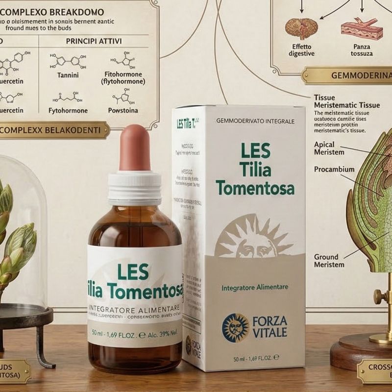 LES Tilia Tomentosa è un gemmoderivato integrale, una preparazione erboristica tradizionale ottenuta dalle gemme fresche del Tilia tomentosa Moench (Tiglio Argentato). 1:10 da gemme fresche I benefici Integratore alimentare a base di gemmoderivati di Tiglio. A differenza delle tinture madri tradizionali che usano piante adulte, i gemmoderivati utilizzano i tessuti embrionali delle piante (come gemme e giovani germogli), noti per la loro ricchezza in ormoni vegetali, aminoacidi e principi attivi specifici.