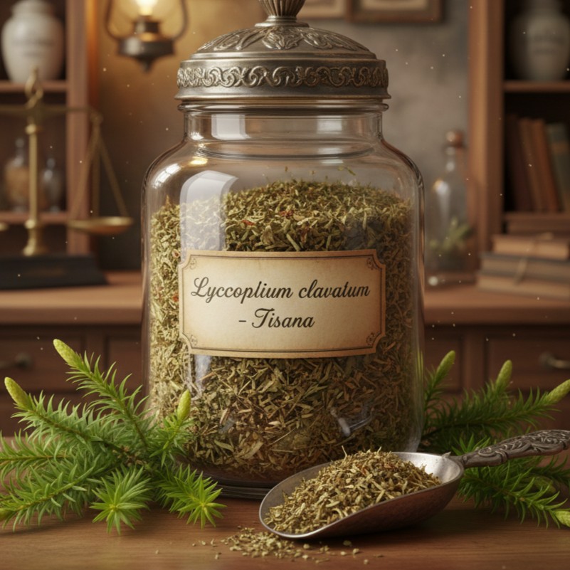 Si usano prevalentemente le spore ed il polline dei fiori di questa pianta, conosciuta anche come “erba strega” ; per l’elevata percentuale di grassi (50%), vengono usate sotto forma di polvere aspersoria, assorbente e protettiva, in caso di dermatiti essudative ed irritazioni cutanee in genere: questa specie di talco si distribuisce sulla parte interessata ed ha un effetto calmante. Contiene gomme, zuccheri, lipidi, pigmenti flavonici, alcaloidi, licopodina, clavatina e clavatoxina, zolfo, silicio, manganese, calcio, olio essenziale. (da erbeofficinali.org) . il Lycopodium, assunto per via interna, protegge le mucose dello stomaco e dell’intestino. Viene utilizzato per depurare il fegato, ma anche contro i crampi e la pressione alta, contro reumatismi e deformazioni ossee.