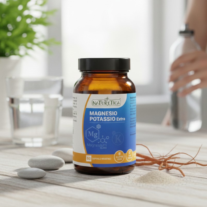 Il Magnesio e il Potassio sono minerali essenziali per la produzione di energia, la contrazione muscolare, la conduzione nervosa e la regolazione del tono vasale. Eccessiva sudorazione legata al caldo estivo, a intensa attività fisica o a causa di diarrea e vomito prolungati possono causare una perdita eccessiva di sali minerali. Magnesio Potassio è l’integratore alimentare indicato ad apportare il giusto livello di minerali, adatto a chi pratica sport e a chi necessita nel periodo estivo di un aumentato fabbisogno di tali nutrienti.
