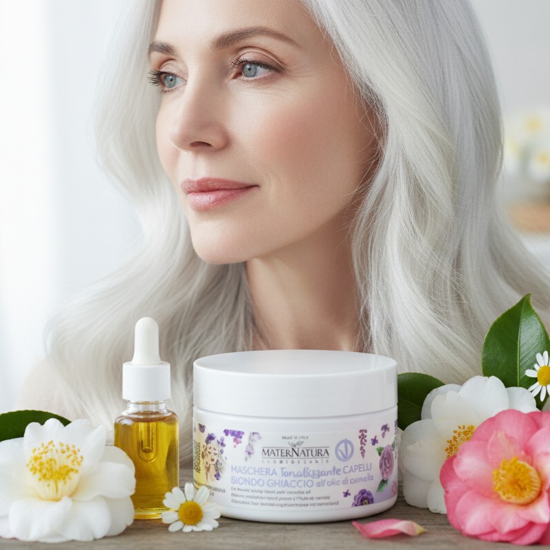 Maschera Tonalizzante Capelli Biondo Ghiaccio all’Olio di Camelia<br>MaterNatura