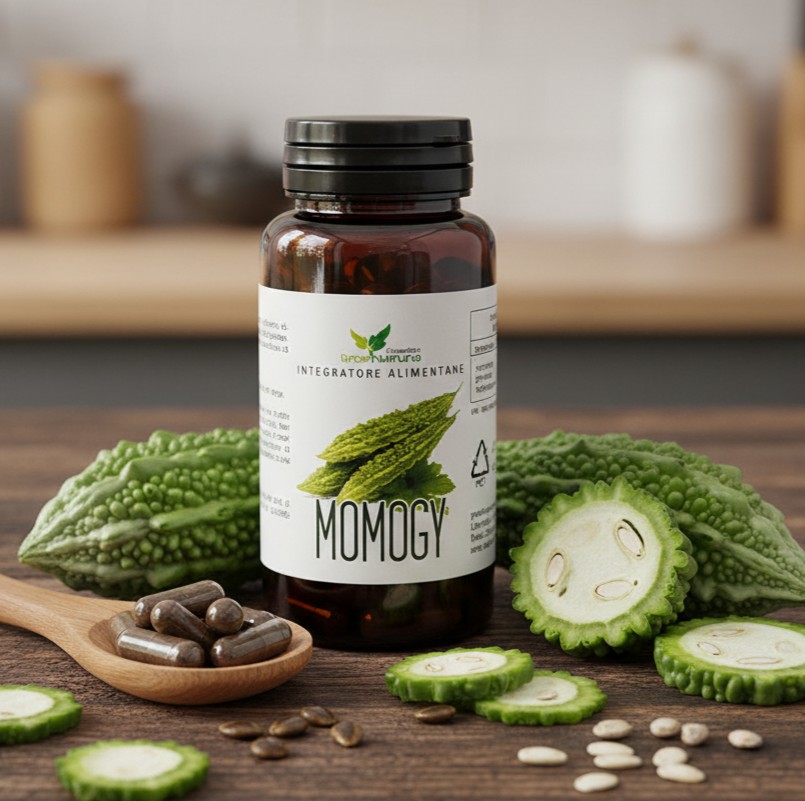Momogy è un composto erboristico formulato dal Laboratorio d’Erbe Sauro per agire in sinergia sul metabolismo degli zuccheri e dei grassi. Combina i benefici della Momordica charantia (nota come melone amaro) e della Gymnema sylvestre (l’erba “anti-zucchero”), rendendolo un supporto naturale e potente per il mantenimento di livelli normali di glucosio nel sangue.