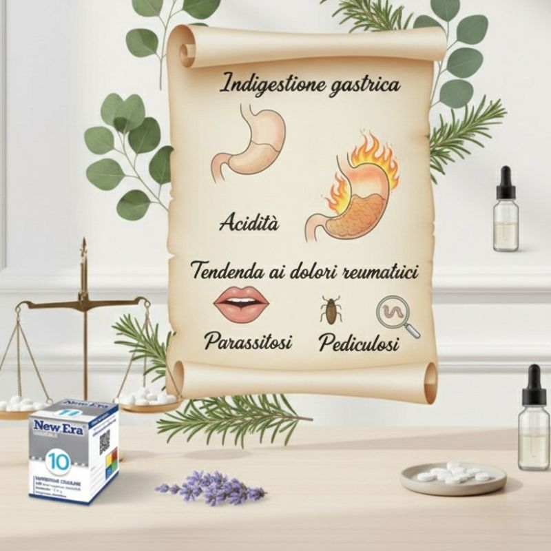 NEW ERA 10 Natrum Phosphoricum è il Sale di Schussler Fosfato di Sodio. Risulta un importante rimedio soprattutto contro le acidosi coadiuvante la neutralizzazione di acido; indicato per la regolazione del metabolismo, indigestione gastrica, acidità, tendenza ai dolori reumatici, parassitosi, pediculosi. Rappresenta il sale regolatore l’equilibrio acido-base.