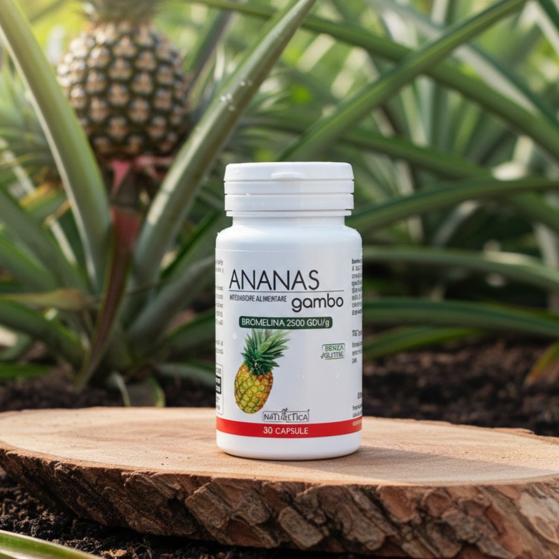 La medicina popolare ha usato per secoli l’Ananas come coadiuvante dei fisiologici processi digestivi, grazie alla presenza della bromelaina che facilita la digestione degli alimenti proteici. La bromelaina è il componente principale del gambo di Ananas, è una famiglia di enzimi proteolitici dotata anche di altre attività: azione antiedematosa ed antinfiammatoria. Un uso peculiare e diffuso è rappresentato dagli inestetismi provocati dalla cellulite; è noto infatti come un’eccessiva ritenzione idrosalina nei tessuti sottocutanei contribuisca, insieme al deposito di lipidi nel tessuto adiposo, alla patogenesi della cellulite e alla formazione della cosiddetta buccia d’arancia. Attraverso una rimozione dell’acqua e dei sali accumulatisi nel tessuto sottocutaneo e ad una stimolazione della diuresi, Ananas Gambo Bromelain può agevolare il ripristino di un normale trofismo cutaneo e la scomparsa delle lesioni tipiche della cellulite. Per questi motivi può essere inserito nelle diete ipocaloriche di soggetti obesi o in sovrappeso, specialmente quando si sospetta che una ritenzione idrica possa contribuire all’aumento del peso corporeo.