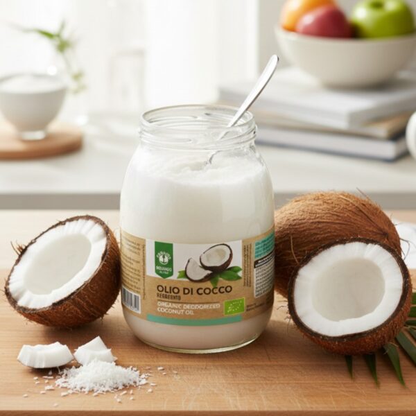 L’Olio di Cocco  è un olio vergine, puro al 100% dal delizioso sapore esotico, è ideale per la cottura e la frittura dei cibi, può anche essere utilizzato come cosmetico per la cura del corpo, grazie alla sua efficace azione emolliente. Grazie alla sua purezza, apporta un delizioso sapore di cocco ai cibi.