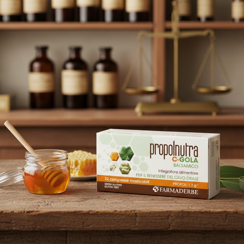 Grazie all’azione combinata di propoli ed estratti vegetali selezionati, le compresse masticabili PROPOLNUTRA C GOLA liberano piacevoli vapori balsamici mentre si sciolgono lentamente, procurando una gradita sensazione di benessere che si diffonde in tutto il cavo orale creando uno scudo protettivo in grado di contrastare le insidie tipiche della stagione fredda.