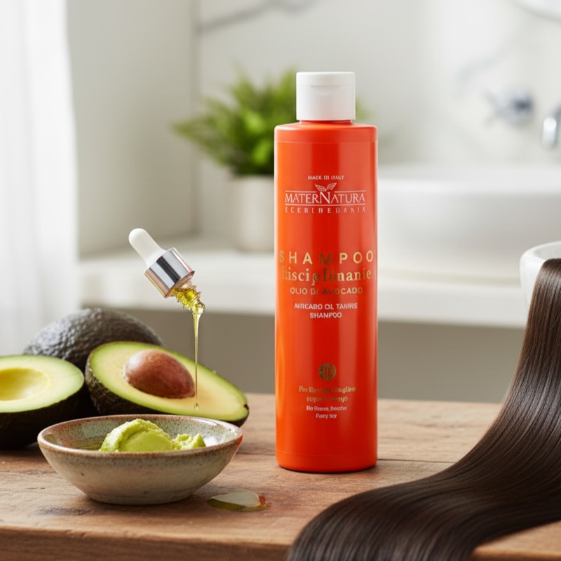 Shampoo disciplinante olio di avocado MaterNatura – Capelli Ribelli, Lisci o Ricci, Senza Crespo – 250 ml