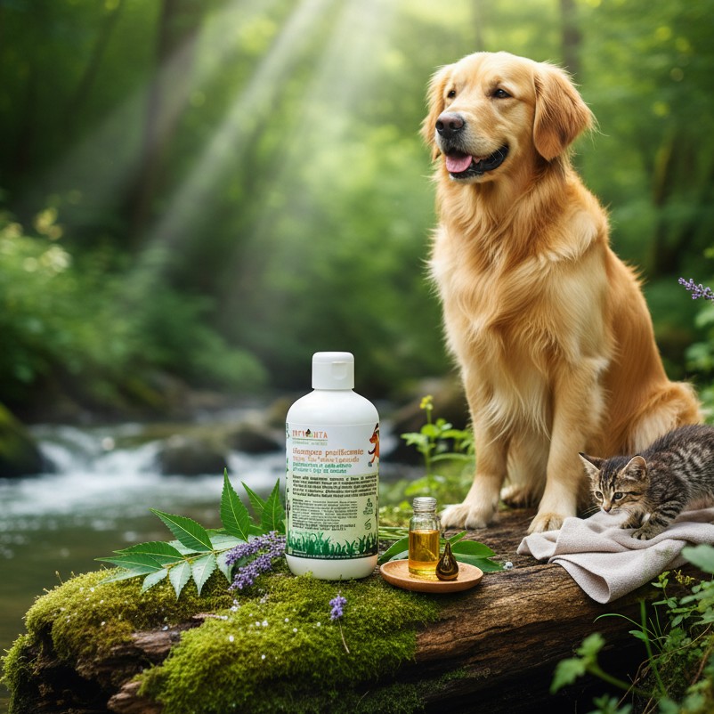 Arricchito con puri oli essenziali di Tea Tree e olio di Neem dalle riconosciute proprietà antiparassitarie.