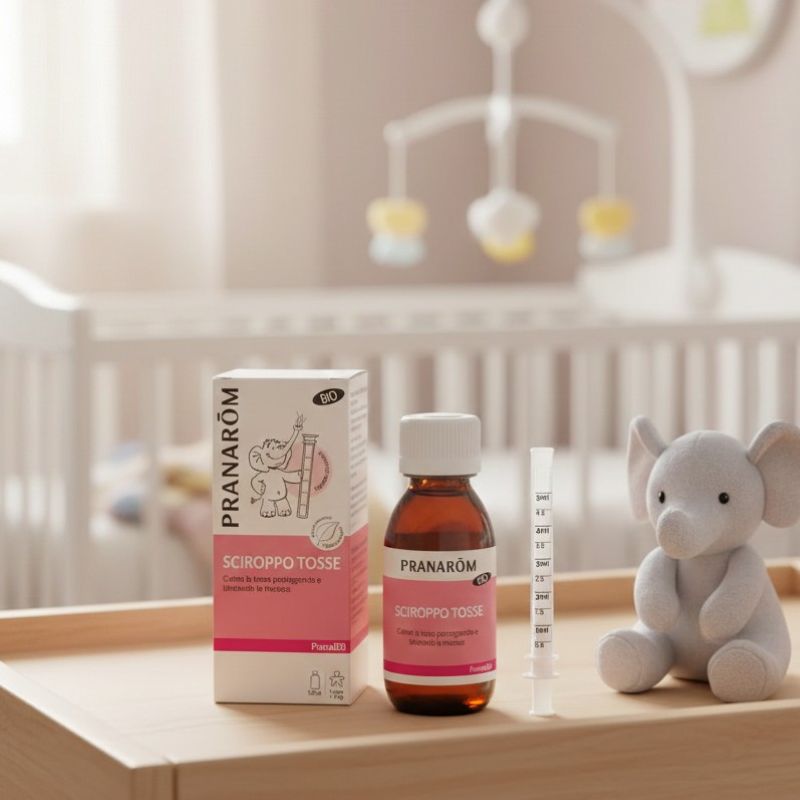 Sciroppo tosse è un dispositivo medico. Questo sciroppo è indicato per il trattamento di tutti i tipi di tosse a partire da 1 anno di età. Questo sciroppo è formulato a partire da attivi naturali tra cui oli essenziali che conferiscono un gusto gradevole adatto ai più piccoli. La sua formula è specialmente sviluppata per costituire un effetto barriera, formando un film protettore che aderisce alla mucosa e la protegge dal contatto con gli agenti irritanti.