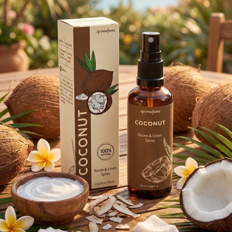 Immergiti nell’atmosfera rilassante delle spiagge tropicali con gli spray per biancheria e ambienti di Aromafume. Un solo spruzzo è sufficiente per trasformare il tuo ambiente domestico, rinfrescandolo e ringiovanendolo. Di notte, una leggera nebulizzazione su lenzuola e cuscini ti aiuterà a rilassarti e a prepararti per un sonno profondo e ristoratore. Lasciati cullare dalla fragranza calda e avvolgente del cocco, che promuove un senso di pace e benessere.
