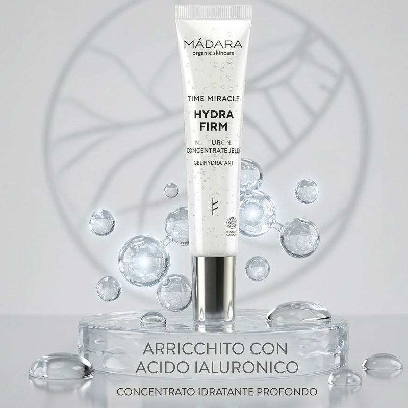 L’acido ialuronico a basso peso molecolare agisce in profondità per rimpolpare la pelle e ripristinarne la vitalità, mentre le molecole di acido ialuronico ad alto peso molecolare favoriscono la ritenzione idrica rinforzando la barriera protettiva cutanea.